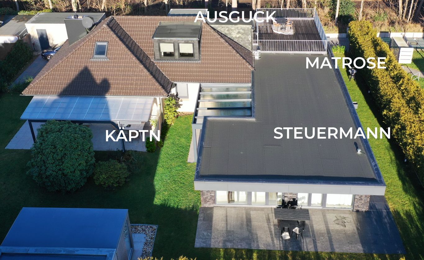 Das Haus ist so konzipiert, dass hier die große Familie Platz findet. Eltern und Kinder in der Wohnung KÄPTN, Oma und Opa oben im AUSGUCK, Bruder und Schwester mit Kind und Kegel in den beiden neuen Wohnungen STEUERMANN und MATROSE